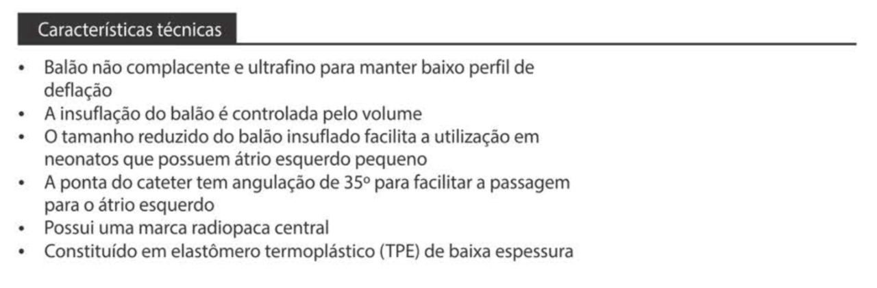 Cateter balão indicado para pacientes com átrio esquerdo pequeno e/ou doença cardíaca congênita que necessitem de um atriosseptostomia, criando uma comunicação interatrial (CIA).