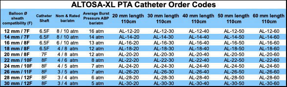 Balão PTA AltoSa-XL é indicado para angioplastia transluminal percutânea em lesões obstrutivas na vasculatura periférica, com ou sem implantação de stents vasculares periféricos expansíveis por balão / stent.