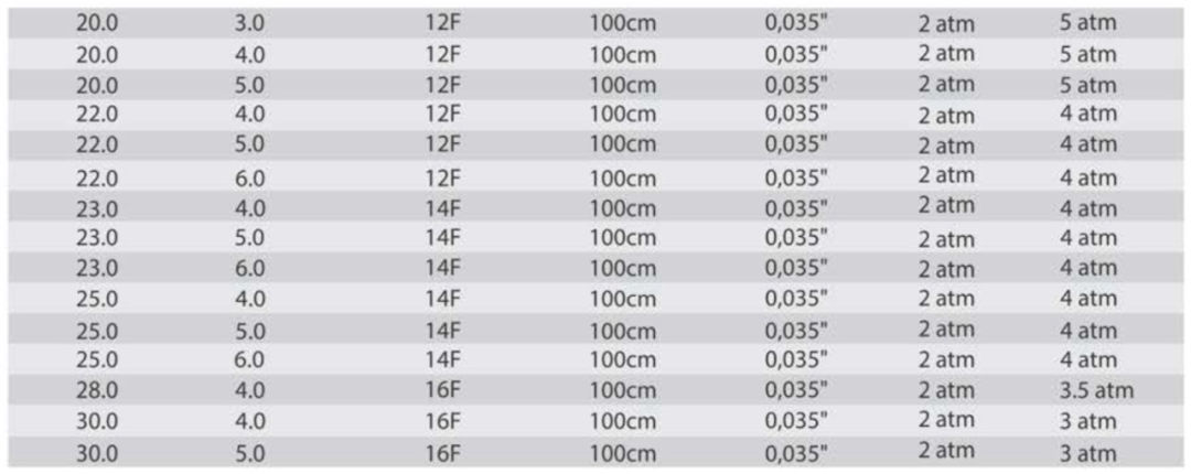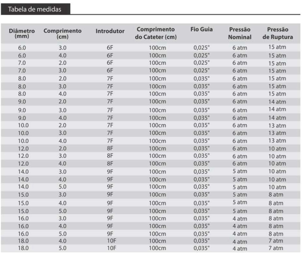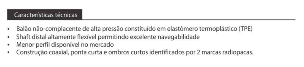 Cateter balão indicado para valvoplastia aórtica e pulmonar, angioplastia transluminal percutânea com balão e/ou implantação de stent, sistema de entrega do stent CP e pré e pós dilatação nos casos de Implante de Prótese Valvar Aórtica via Transcateter (TAVI).