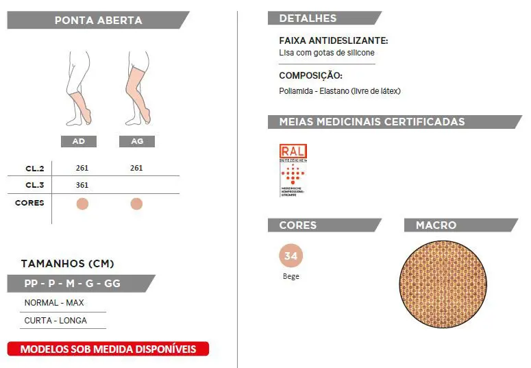 incluindo meias sob medida, atendendo às